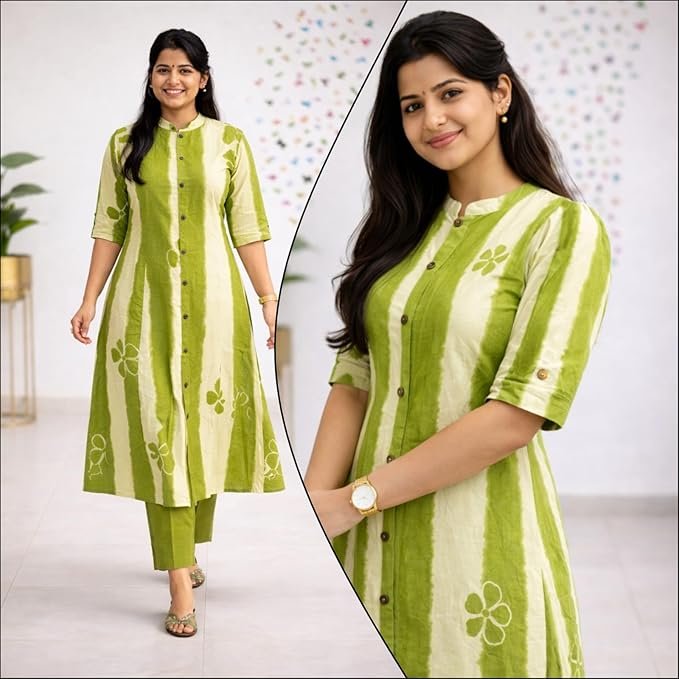 GoSriKi Women Cotton Printed A-Line Ethnic Co-Ord Set | Kurta Pant Set | Kurta Palazzo Set | Stylish Suit Set, Festival