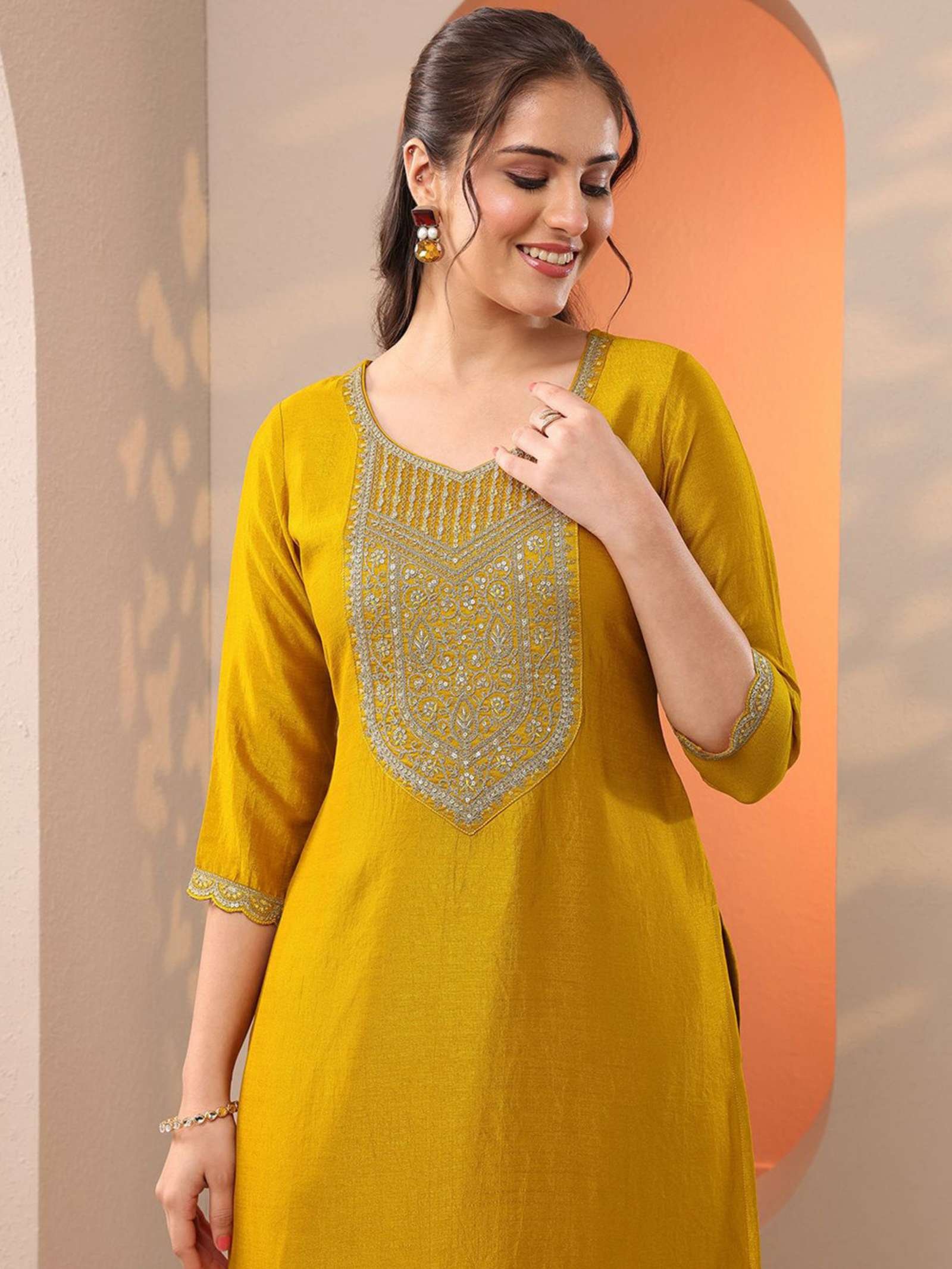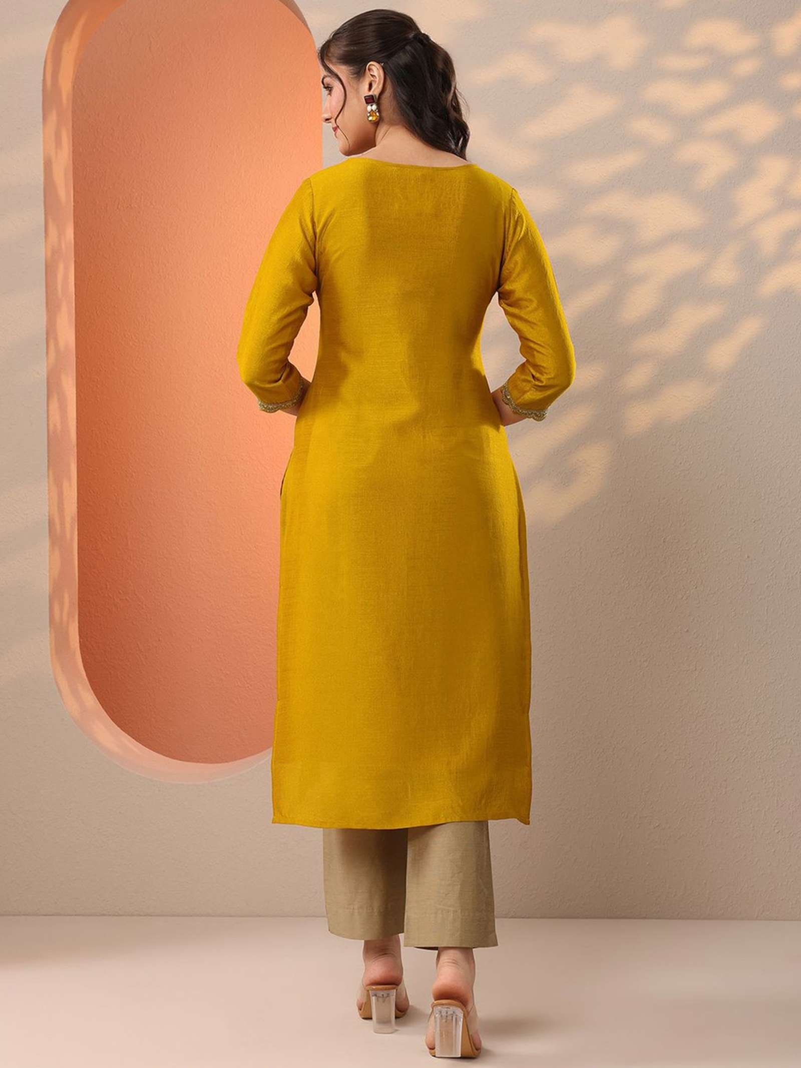 Vibrant Palette: A stunning Mustard Yellow that stands out in festive lighting and daylight alike.