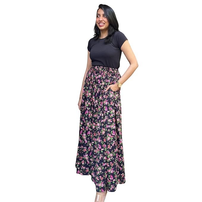 Women Viscose Crepe Flared Printed Palazzo Elasticated Waist Loose-fit & Regular, Casual Wear (Free Size 28 to 42 Waist) (in, Numeric, 42, Regular,)