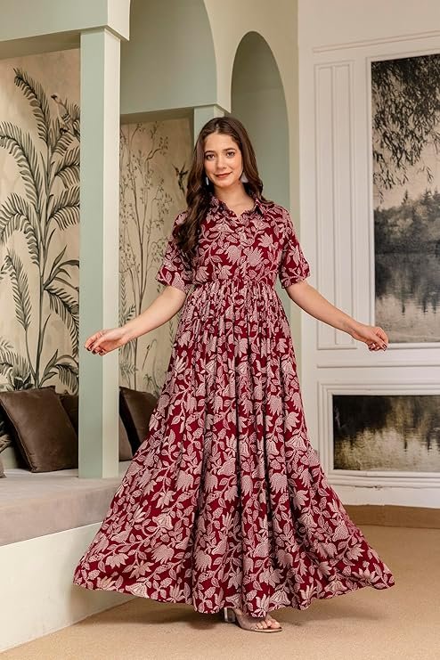 Women Printed Anarkali Kurta || Floral Anarkali Gown || Long Gown for Women || Women Dress