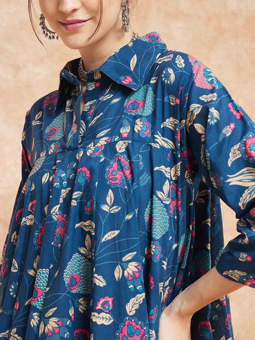 Women Printed Cotton Blend Anarkali Kurta(Blue – XL)