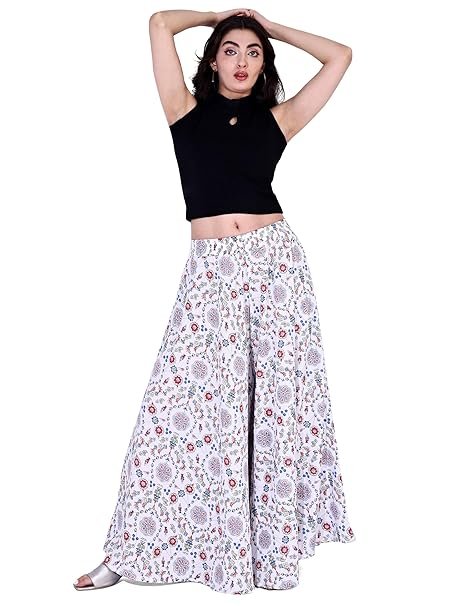 Women Viscose Crepe Flared Printed Palazzo Elasticated Waist Loose-fit & Regular, Casual Wear (Free Size 28 to 42 Waist) (in, Numeric, 42, Regular,)