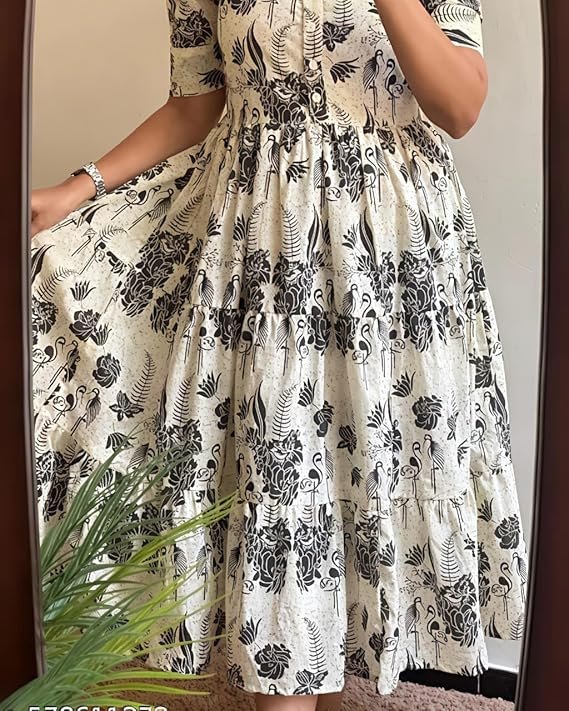 One Piece Dress for Women, New American Print Rayon Midi Dress, Stylish, Modern Party Outfit, Perfect for Casual and Formal Occasions