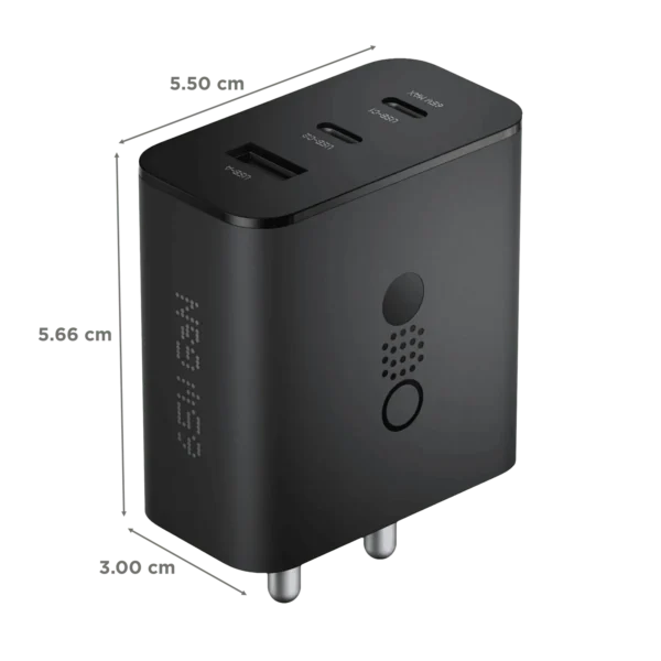 Nothing C332 65W Type A and Type C 3-Port Fast Charger (Adapter Only, GaN Technology, Dark Grey)